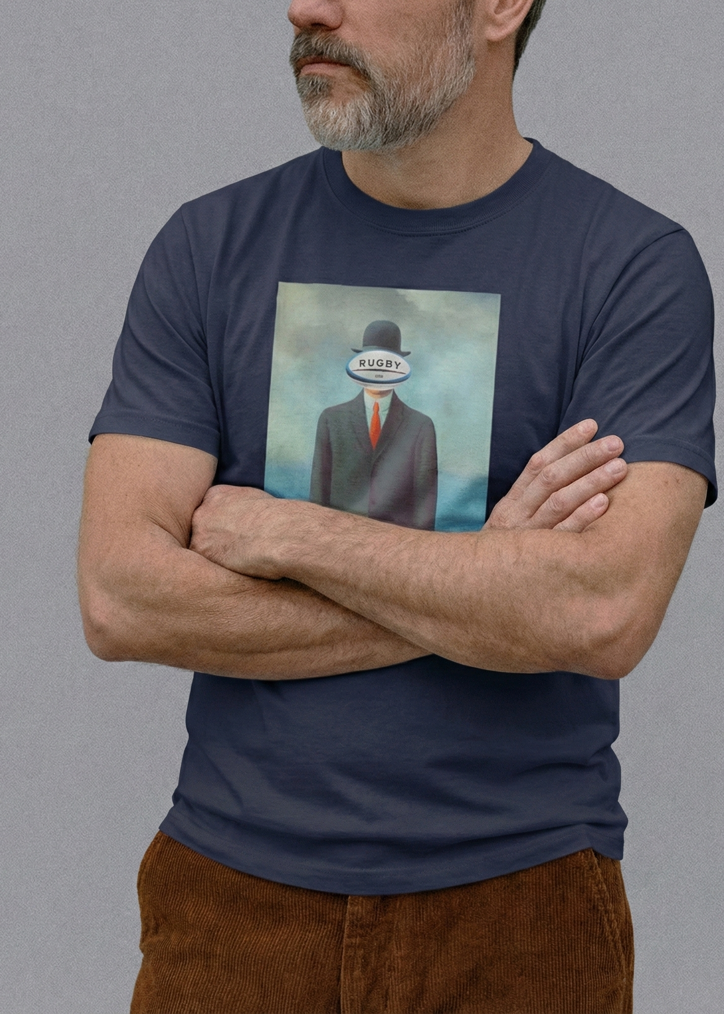 🏉 Quand le rugby défie la réalité ! Ce design joue avec la symbolique du surréalisme, où l’identité se cache derrière un ballon de rugby. Une référence subtile à l’élégance du jeu et au mystère du joueur. Une pièce unique qui questionne la place du sport dans l’imaginaire collectif et célèbre l’union entre style et performance.